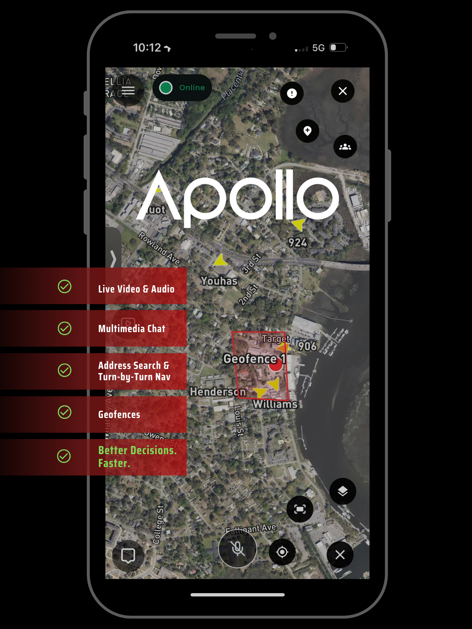 Apollo is built to the highest standards to safeguard your communications, location data, and operational intelligence at all times. So your team stays connected, informed, and protected.